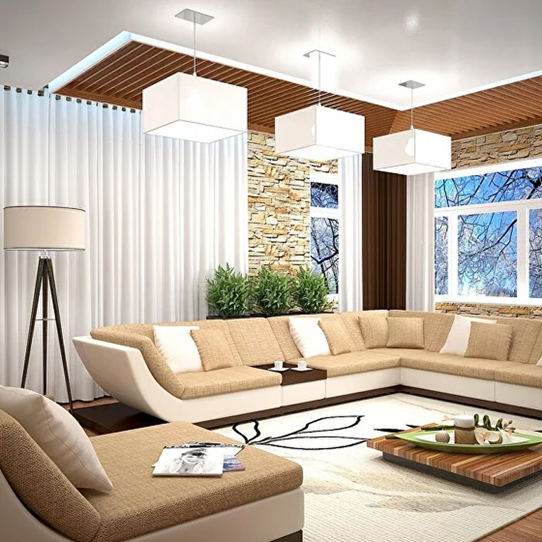 Потолок для гостиной с подсветкой